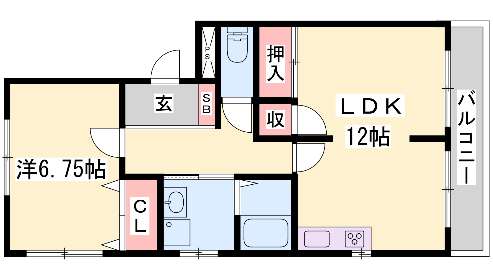 - LDK12帖、洋室6.75帖