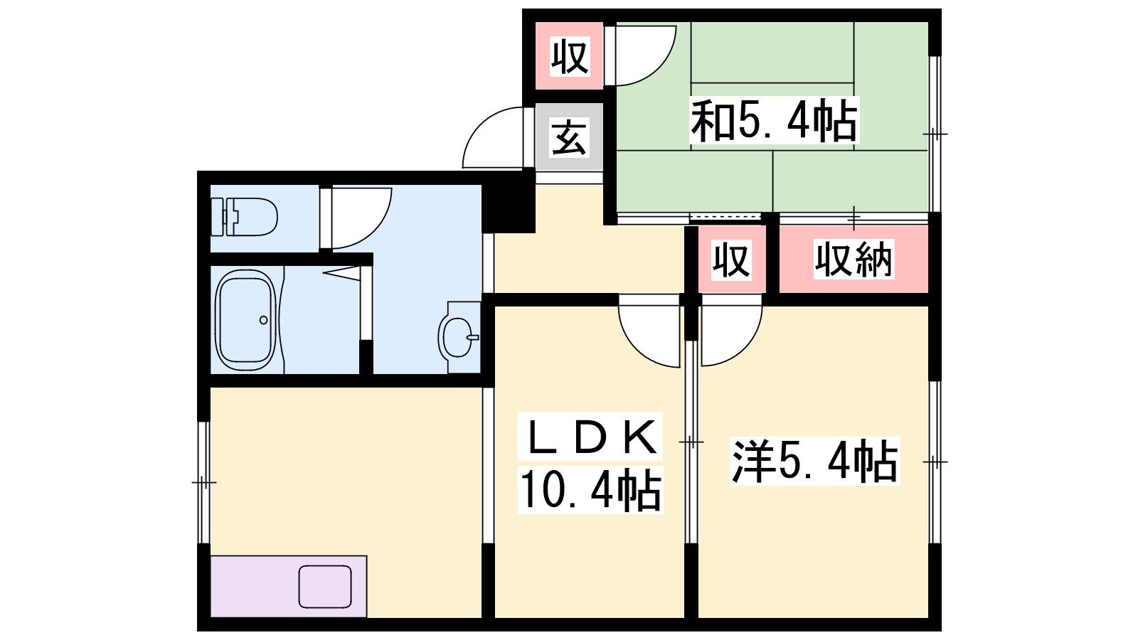 - LDK10.4帖、洋室5.4帖、和室5.4帖