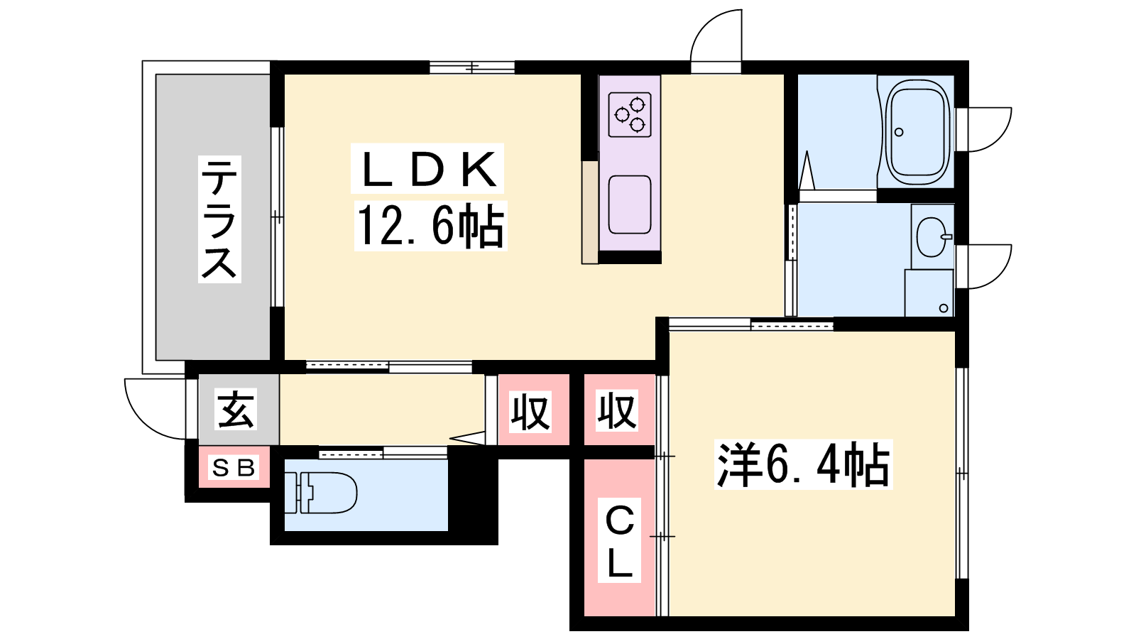 - LDK12.6帖、洋室6.4帖