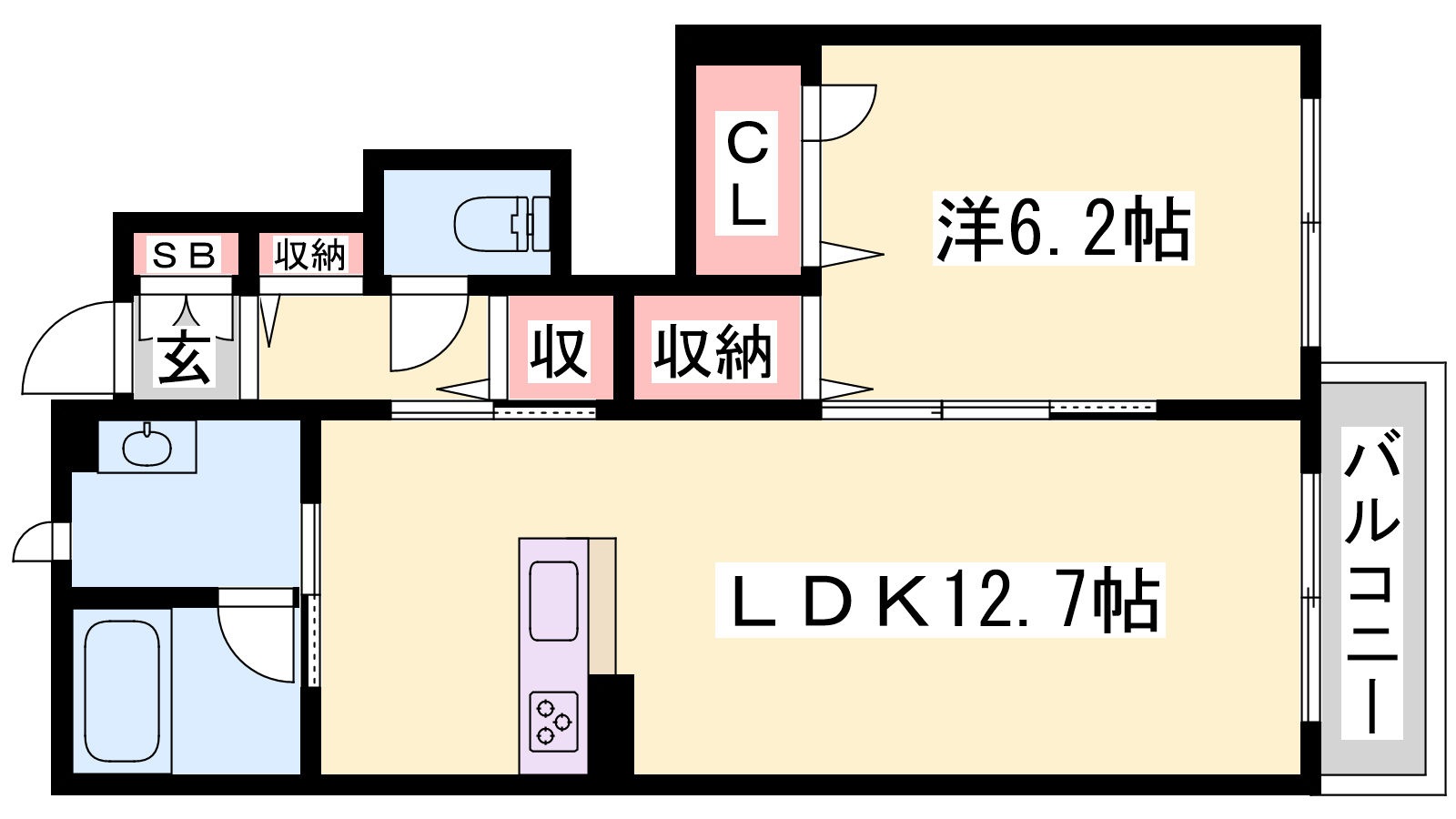 - LDK12.7帖、洋室6.2帖