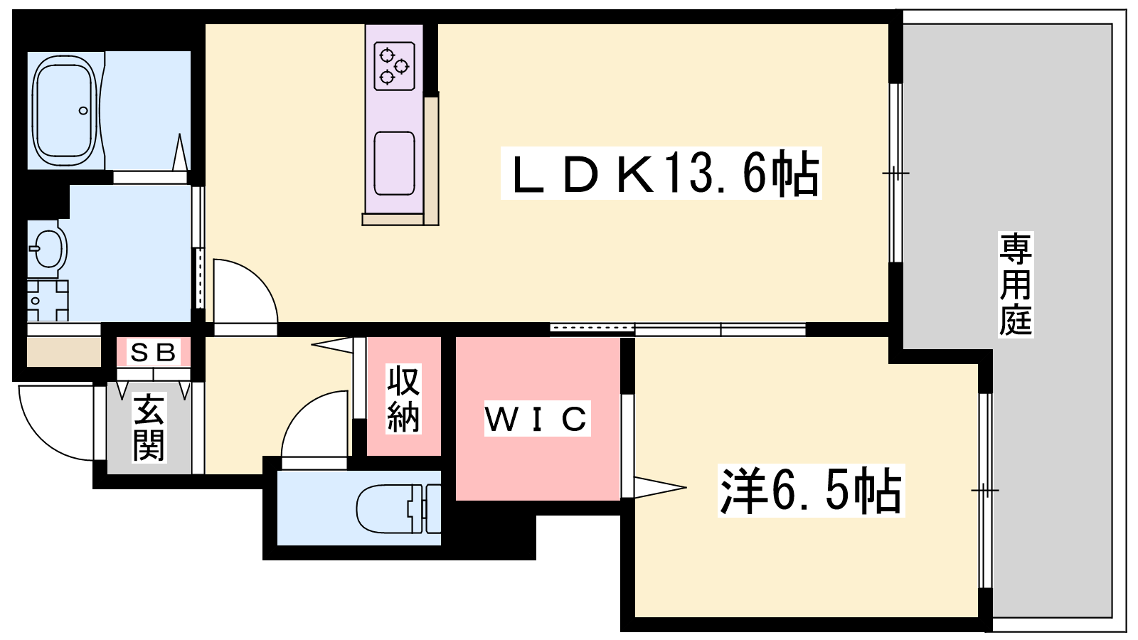 - LDK13.6帖、洋室6.5帖