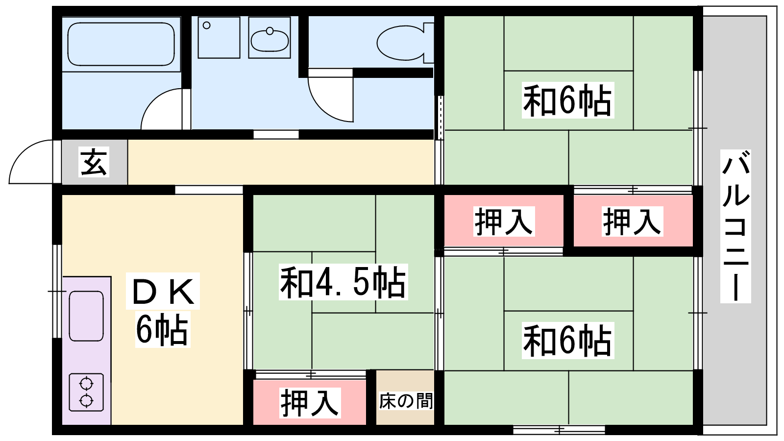 - DK6帖、和室6帖、和室6帖、和室4.5帖