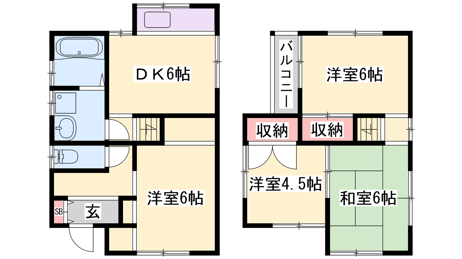 - DK6帖、洋室6帖、洋室6帖、洋室4.5帖、洋室6帖