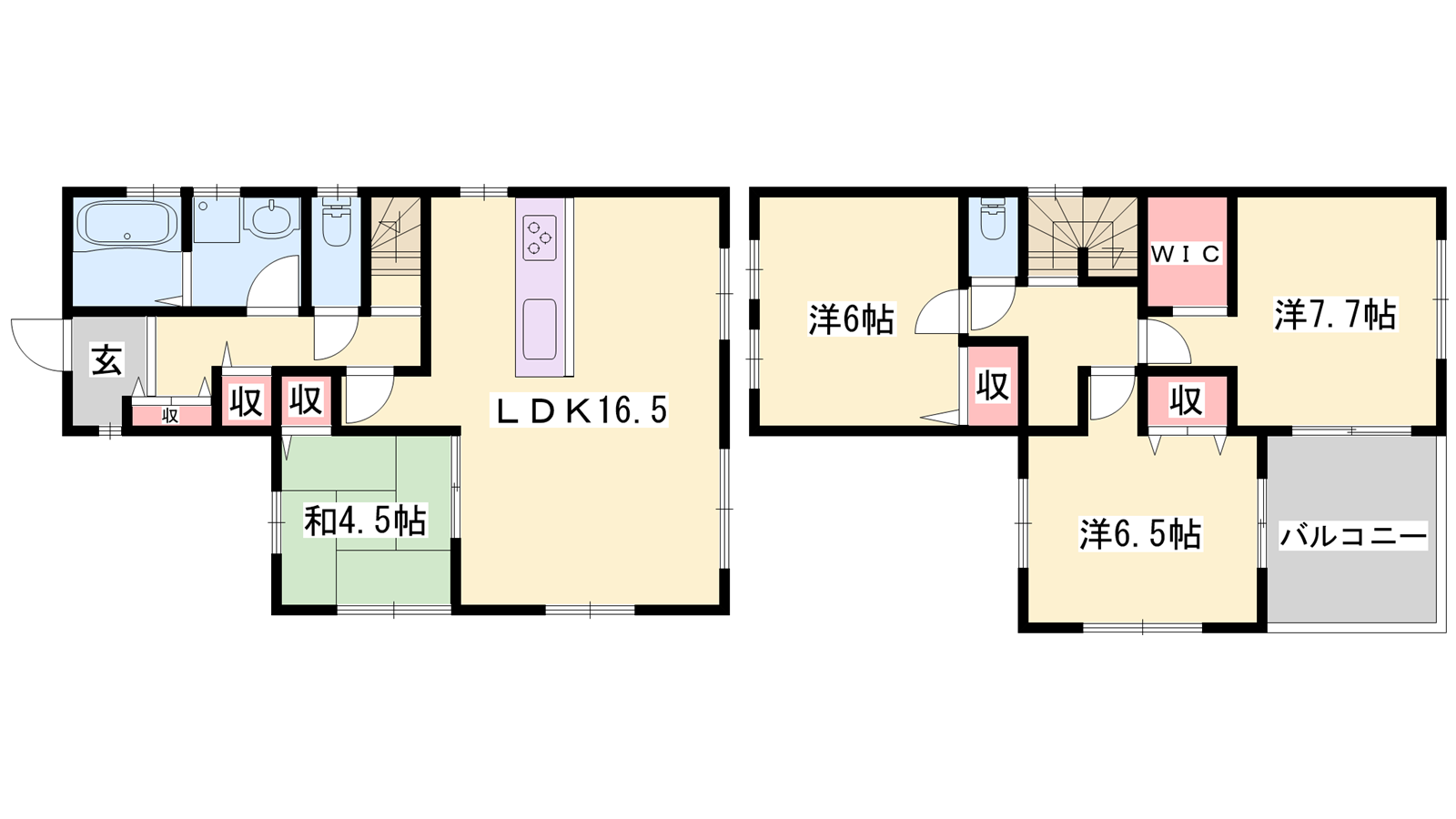 - LDK16.5帖、洋室7.75帖、洋室6.5帖、洋室6帖、和室4.5帖