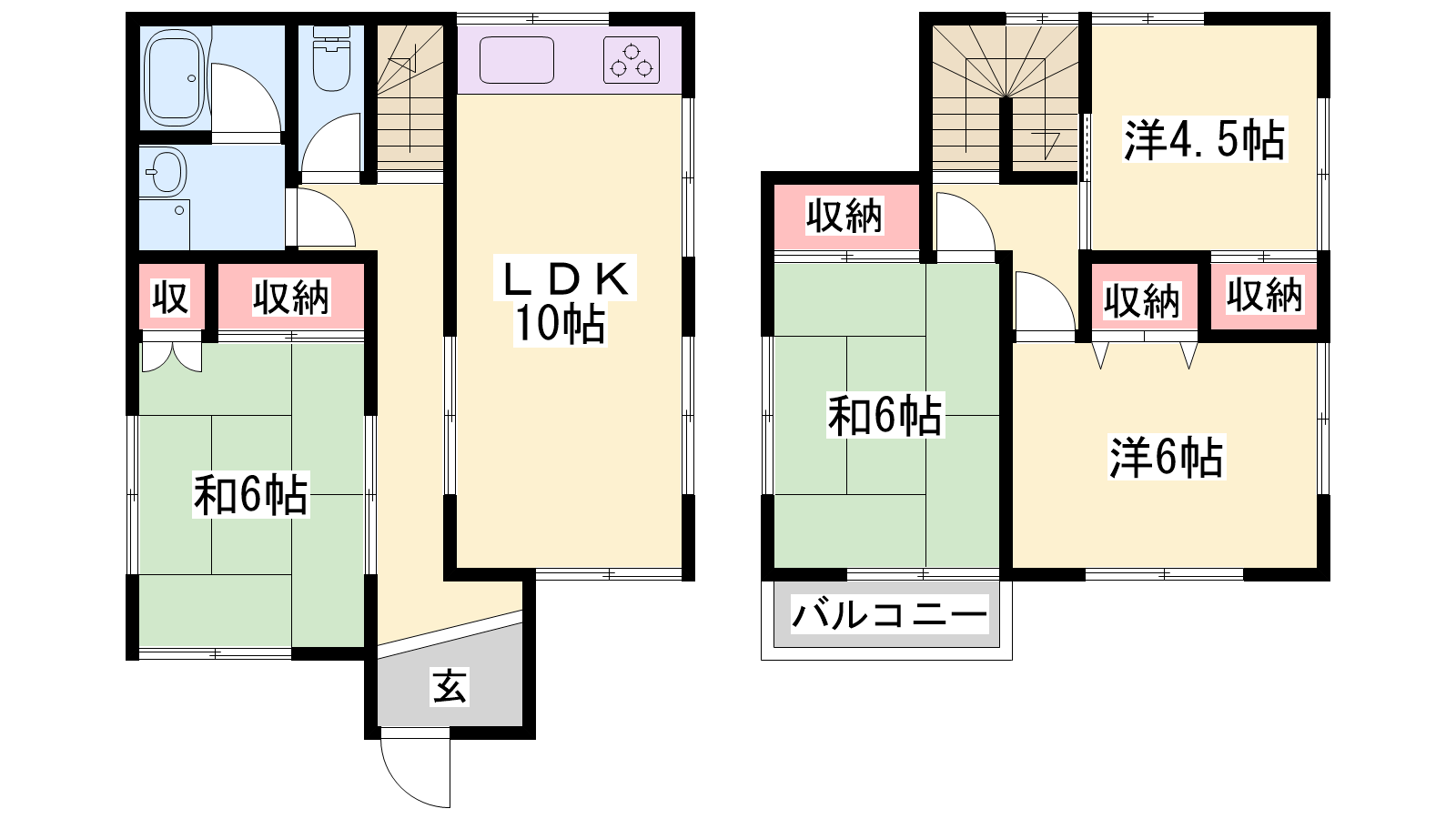 - LDK10帖、洋室6帖、和室6帖、和室6帖、洋室4.5帖