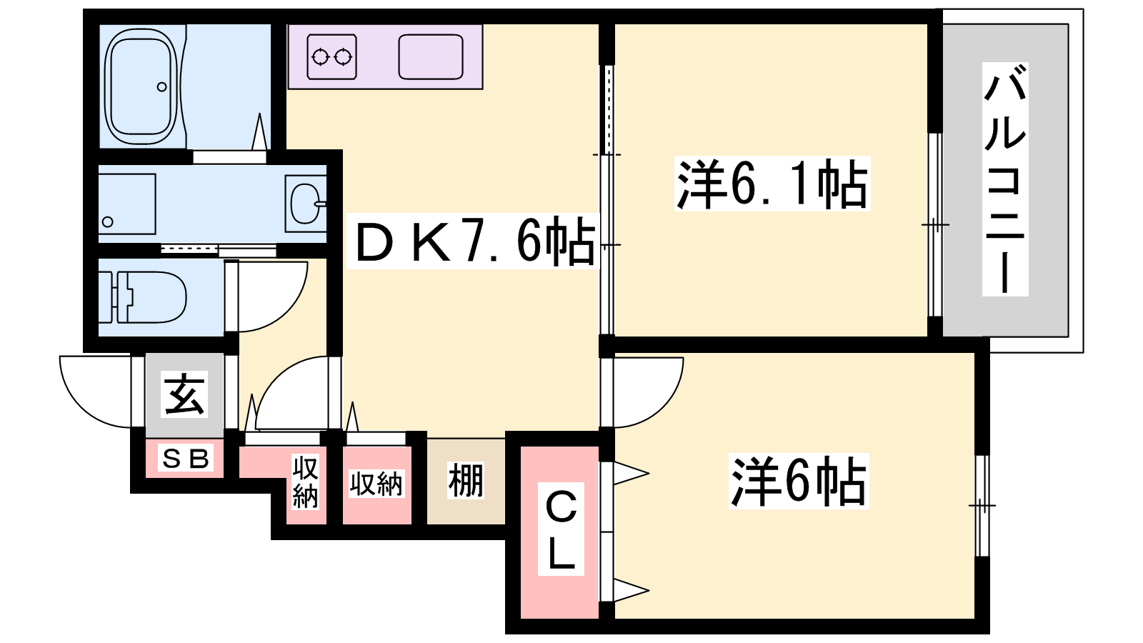 - DK7.6帖、洋室6.1帖、洋室6帖
