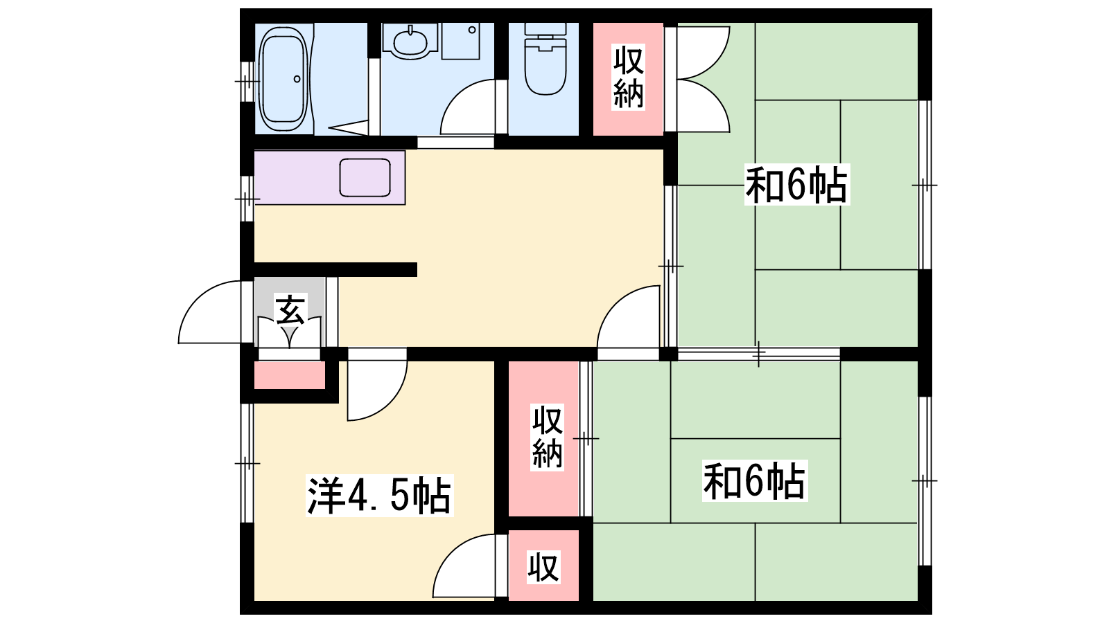 - K5帖、洋室4.5帖、和室6帖、和室6帖