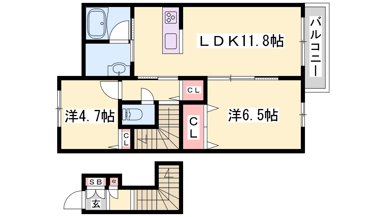 - LDK11.8帖、洋室6.5帖、洋室4.7帖
