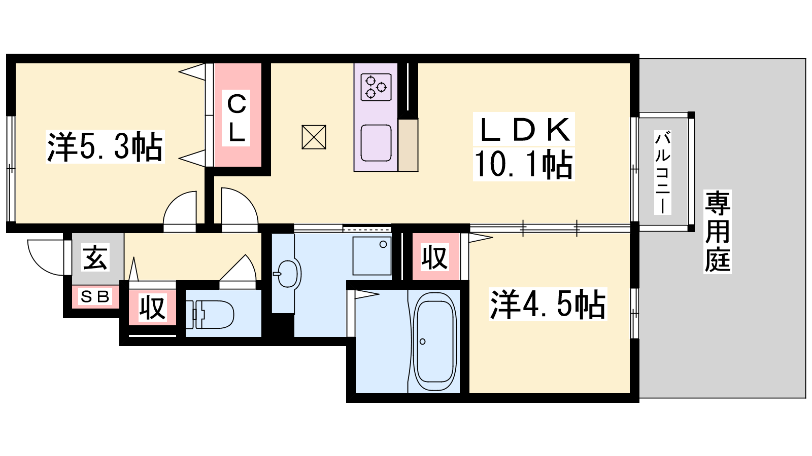- LDK10.1帖、洋室5.3帖、洋室4.5帖