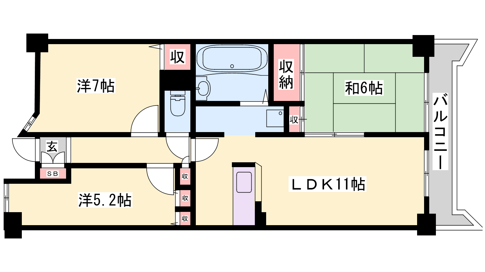 - LDK11帖、洋室7帖、洋室5.2帖、和室6帖
