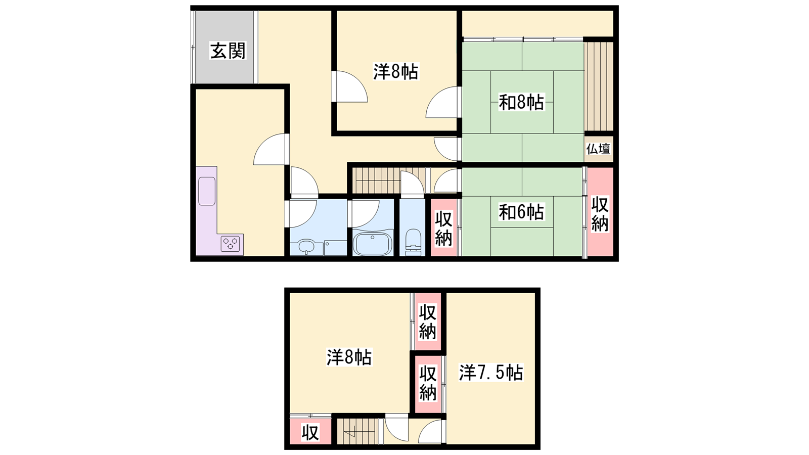 - 洋室8帖、洋室8帖、洋室7.5帖、和室8帖、和室6帖