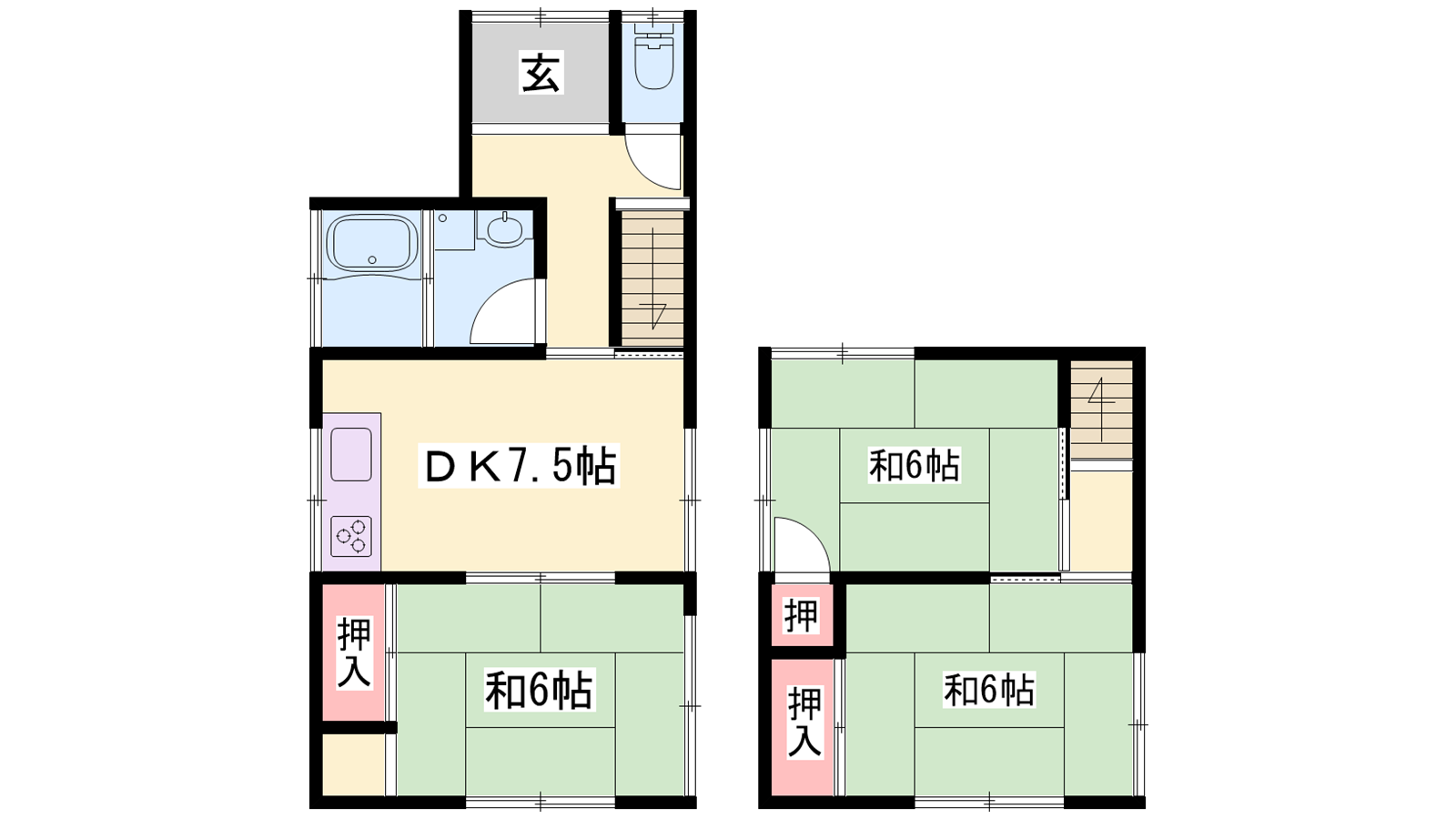 - DK7.5帖、和室6帖、和室6帖、和室6帖