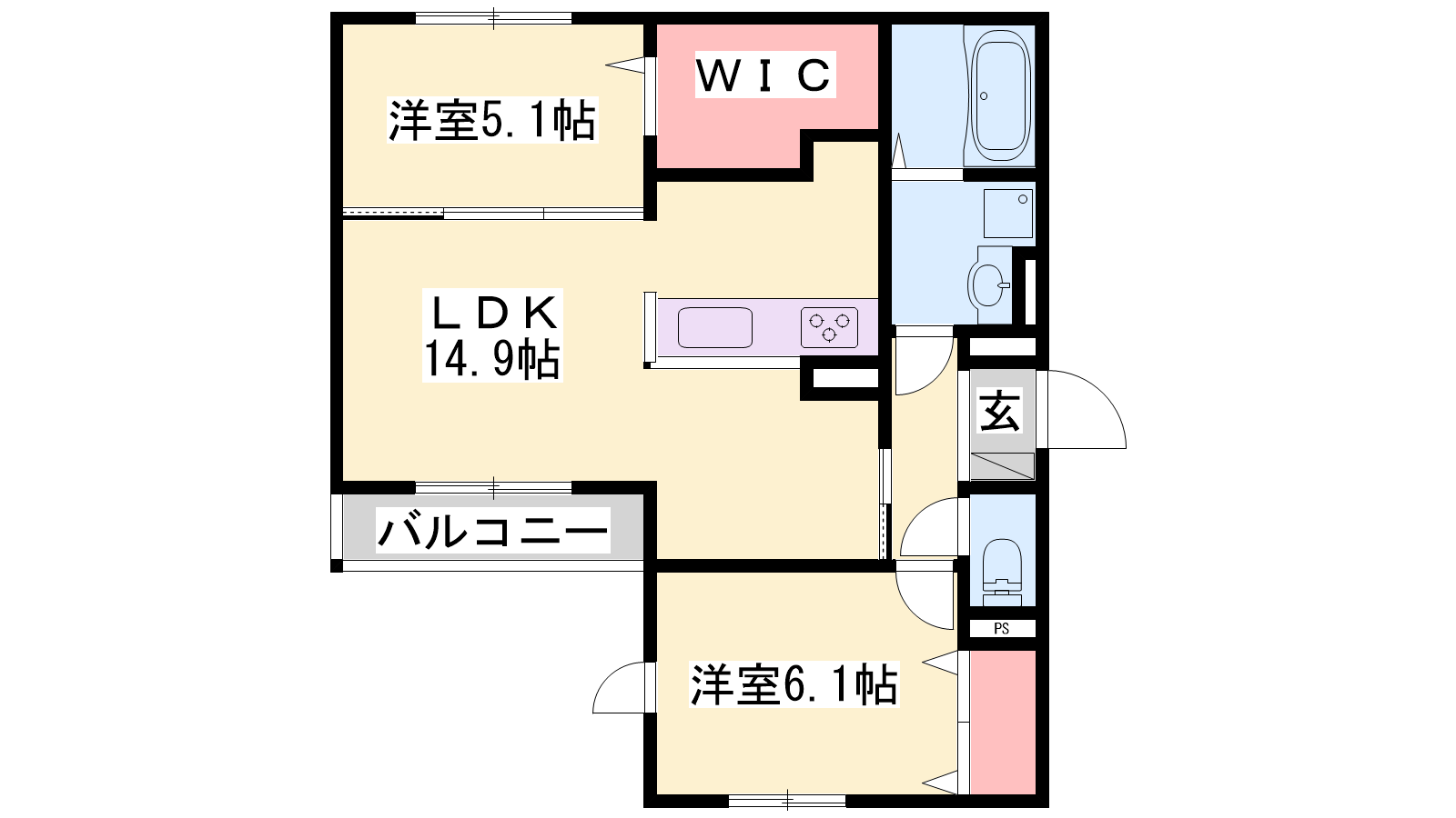 - LDK15.8帖、洋室6.6帖、洋室6帖