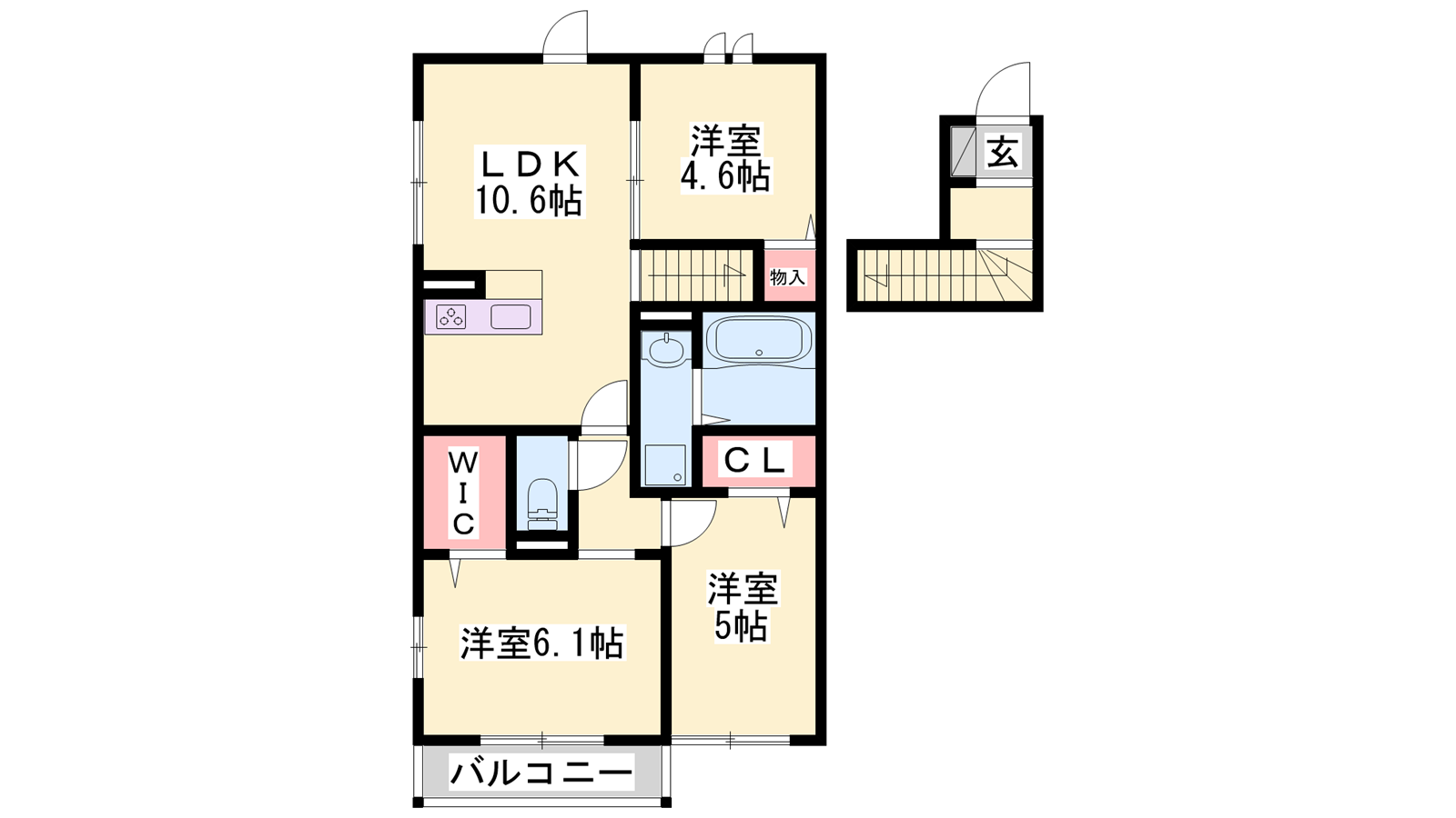 - LDK10.6帖、洋室6.1帖、洋室5帖、洋室4.6帖