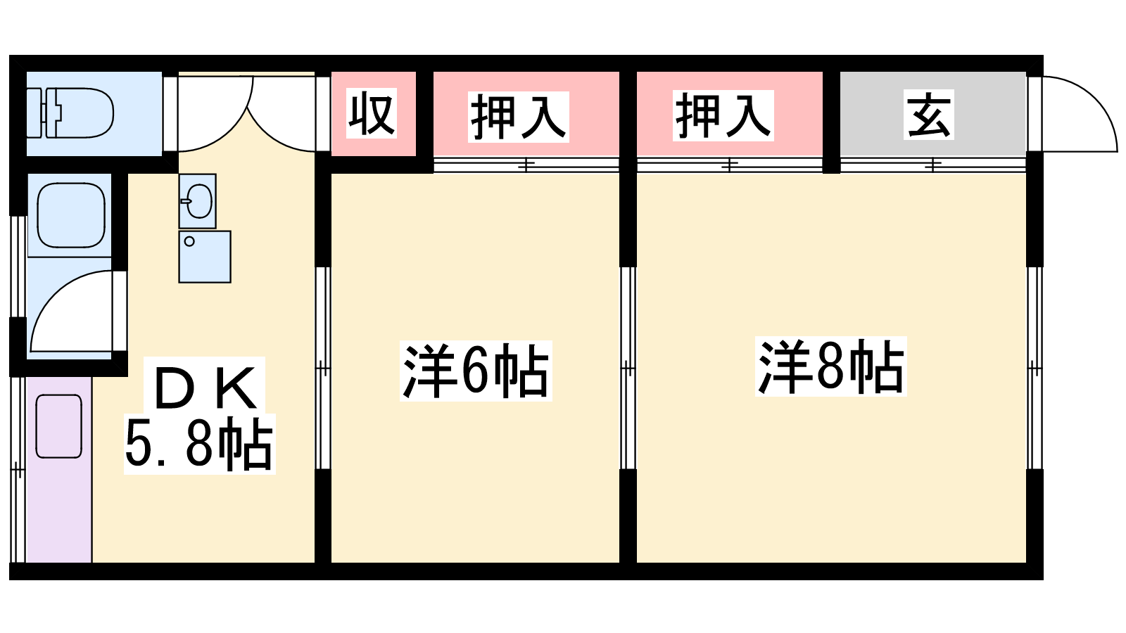 - DK5.8帖、洋室8帖、洋室6帖
