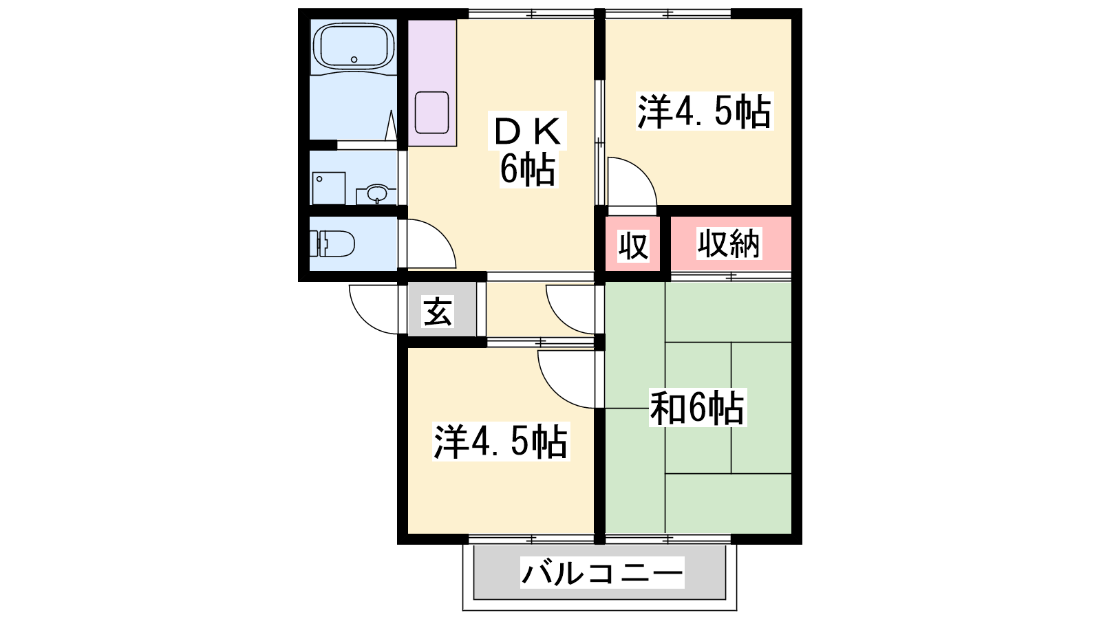 - DK6帖、和室6帖、洋室4.5帖、洋室4.5帖