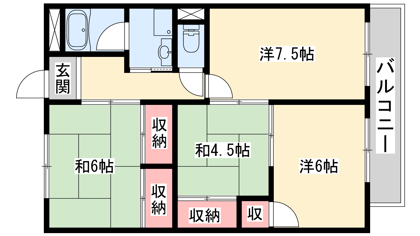- DK7.5帖、洋室6帖、和室6帖、和室4.5帖