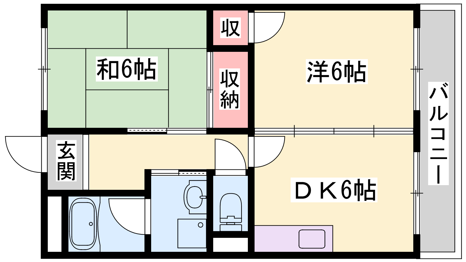 - DK6帖、洋室6帖、和室6帖