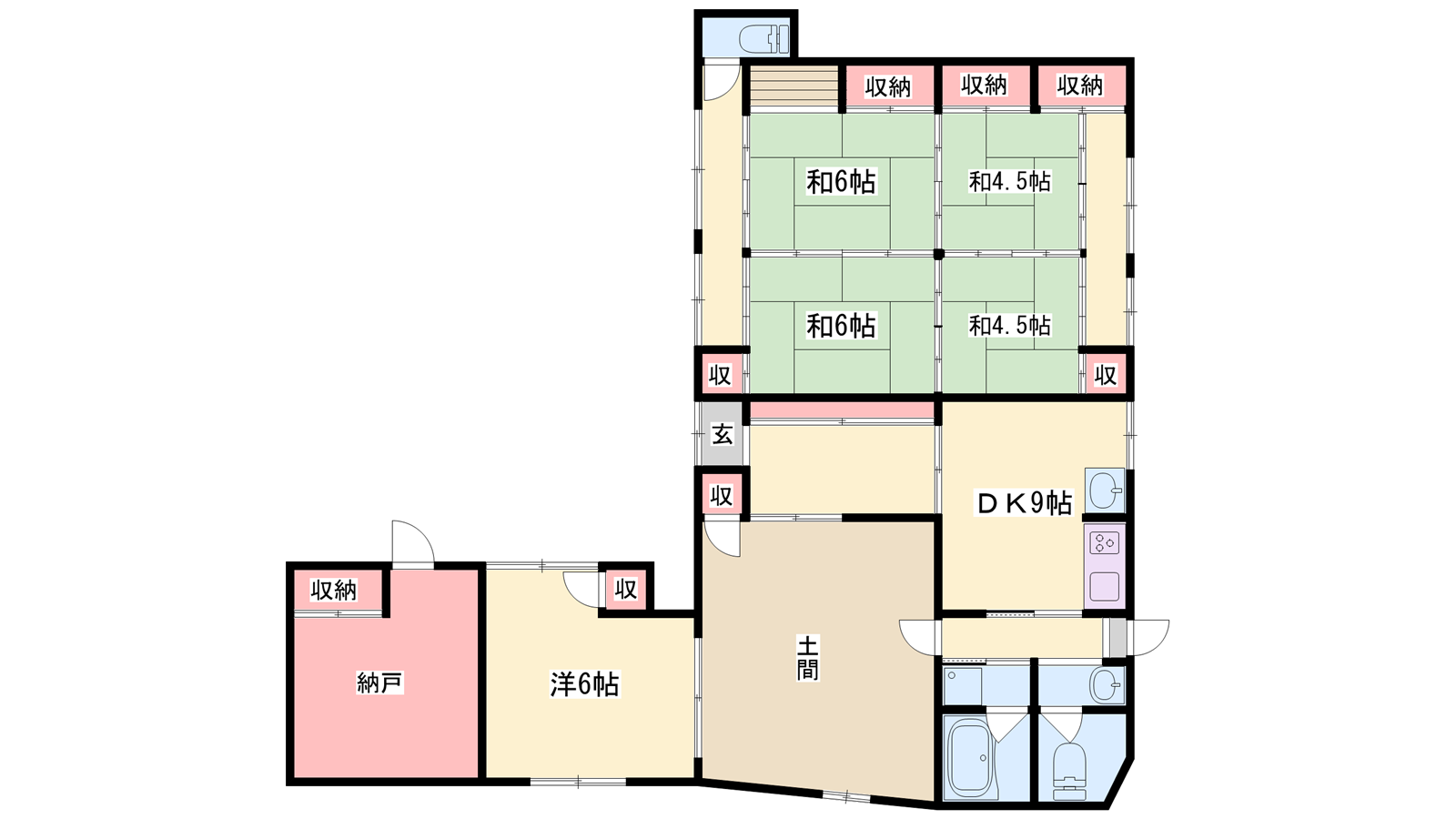 - LDK9帖、洋室6帖、和室6帖、和室6帖、和室4.5帖、和室4.5帖