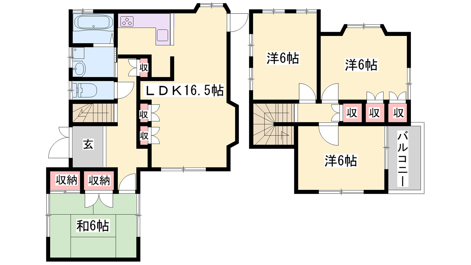 - LDK16.5帖、洋室6帖、洋室6帖、洋室6帖、洋室6帖、和室6帖