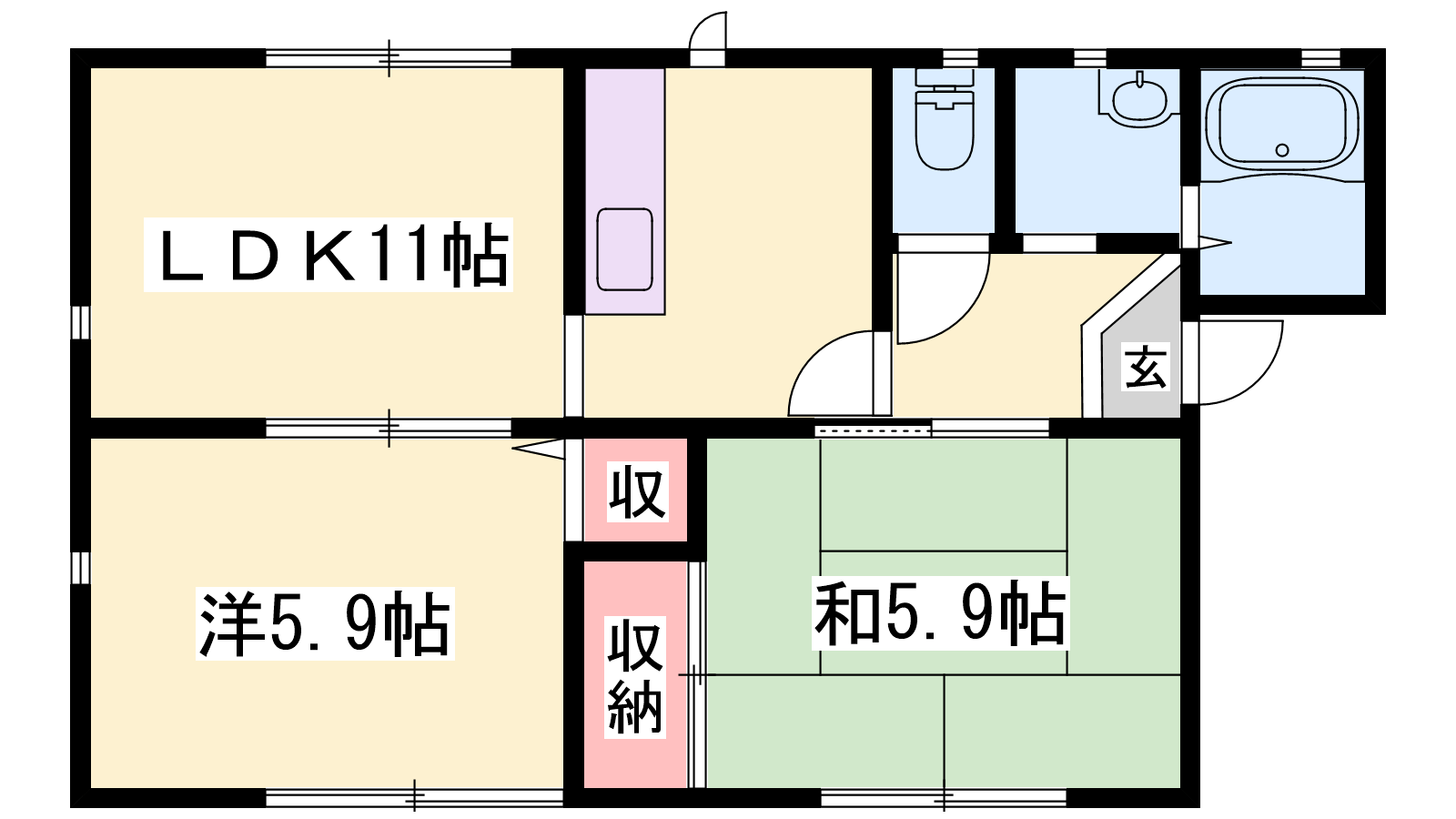 - LDK11帖、洋室5.9帖、和室5.9帖