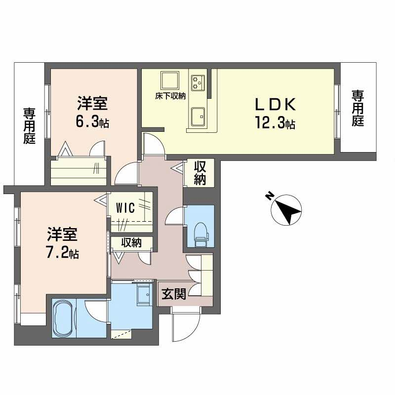 - LDK12.3帖、洋室7.2帖、洋室6.3帖
