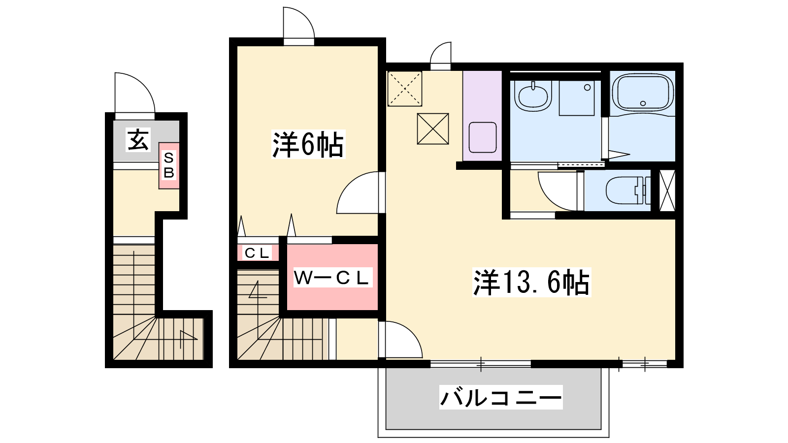 - 洋室13.6帖、洋室6帖