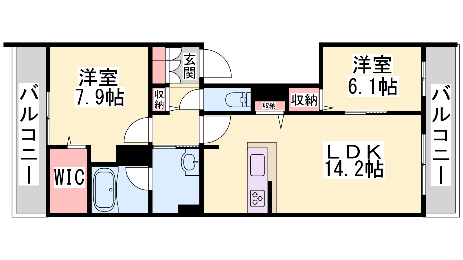 - LDK14.2帖、洋室7.9帖、洋室6.1帖