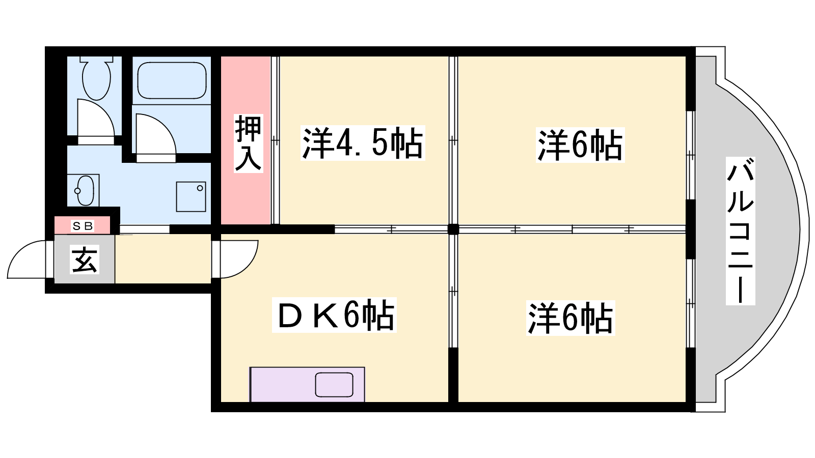 - DK6帖、洋室6帖、洋室6帖、洋室4.5帖