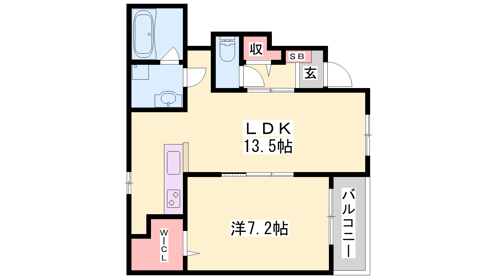 - LDK13.5帖、洋室7.2帖