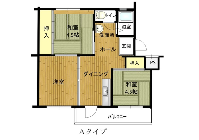 - DK6.7帖、洋室6帖、和室4.5帖、和室4.5帖