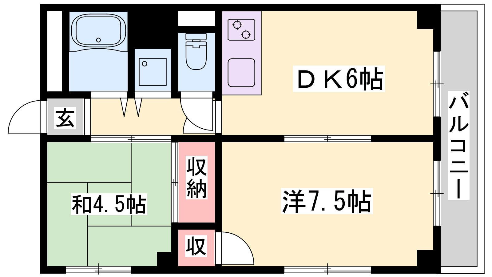 - DK6帖、洋室7.5帖、和室4.5帖
