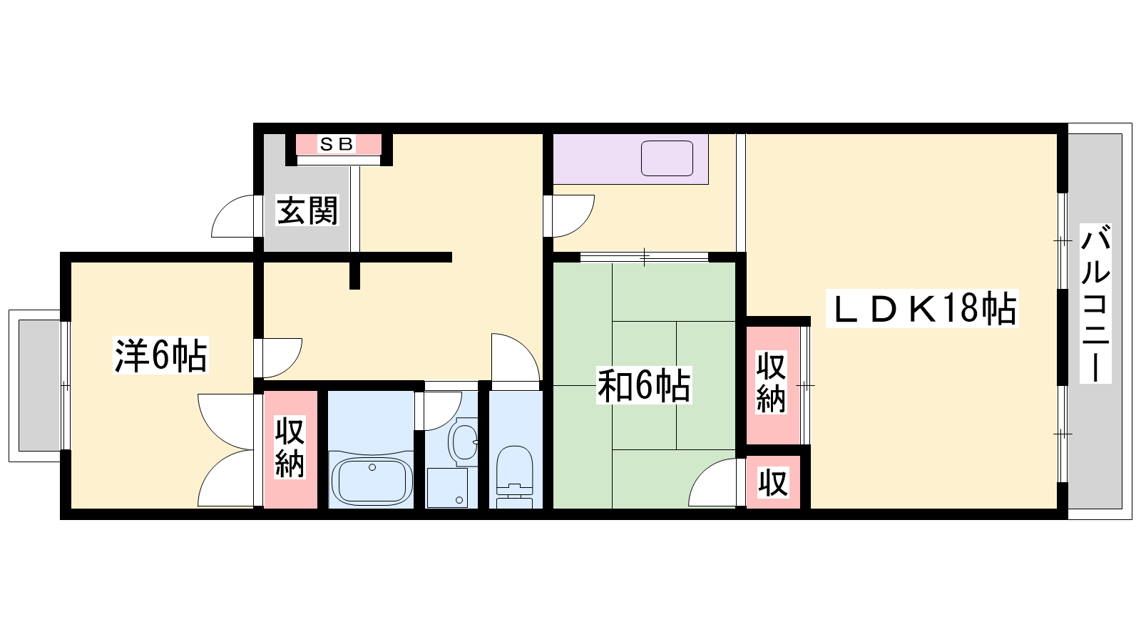 - LDK18帖、洋室6帖、和室6帖