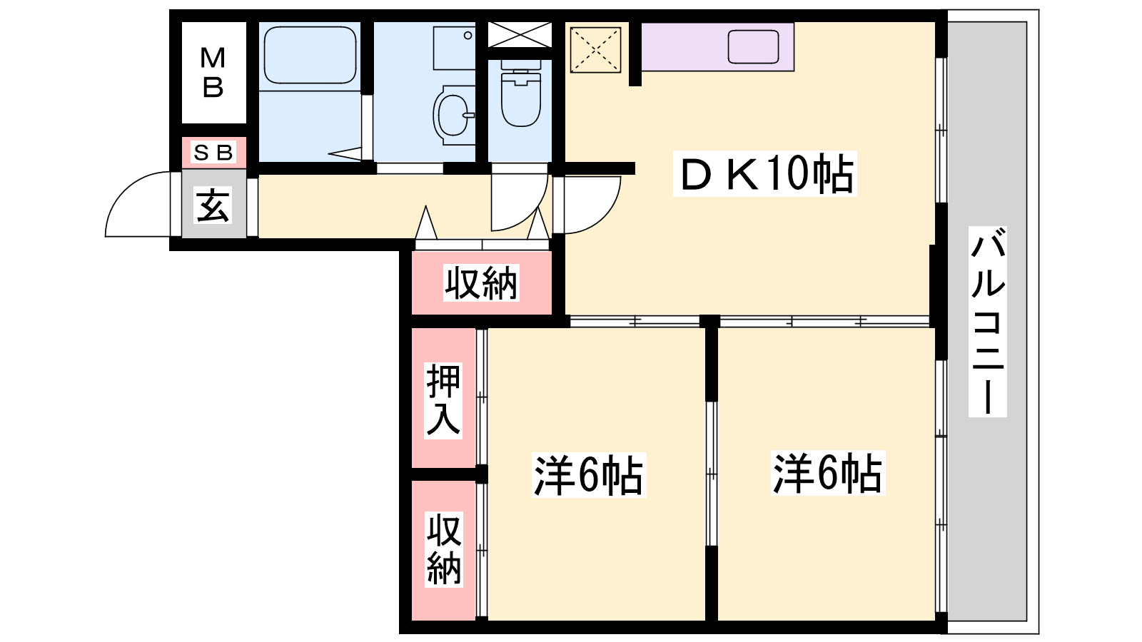 - DK10帖、洋室6帖、洋室6帖