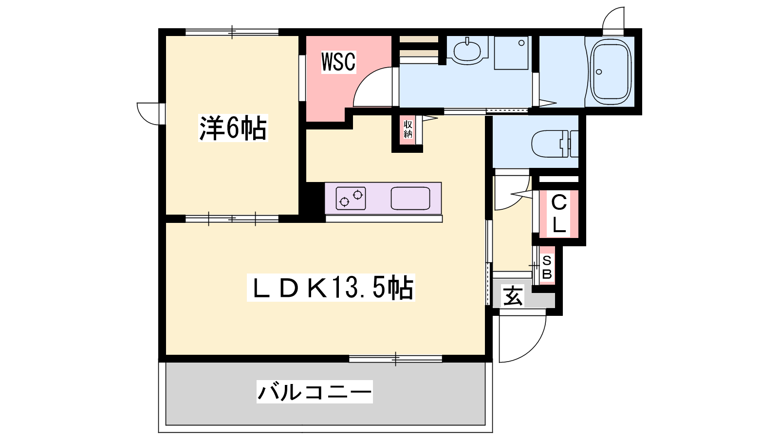 - LDK13.5帖、洋室6帖