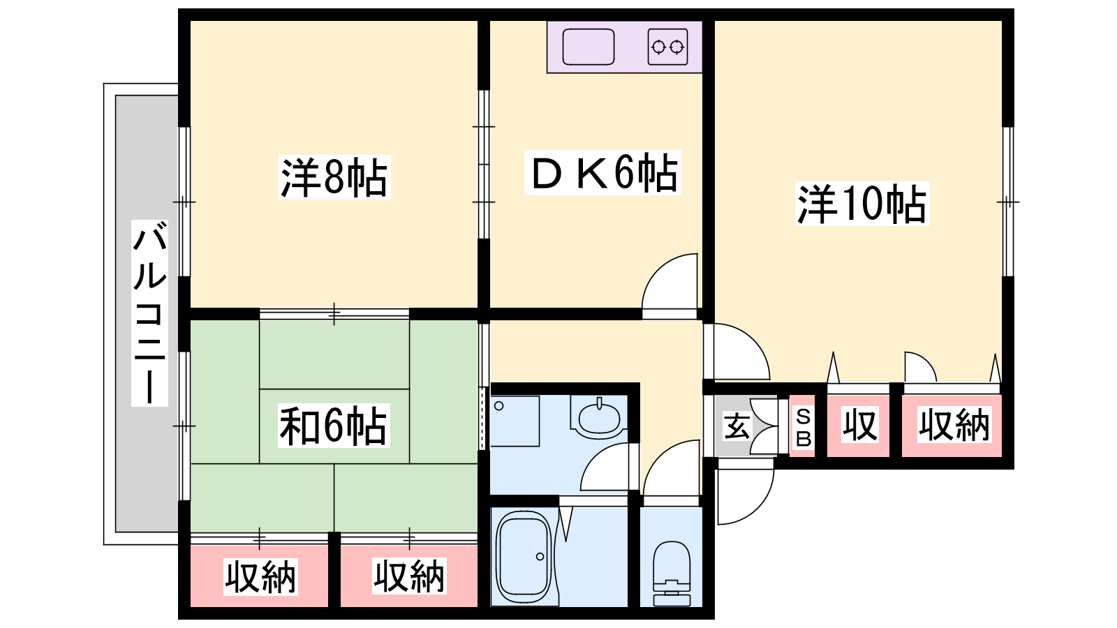 - DK6帖、洋室10帖、洋室8帖、和室6帖