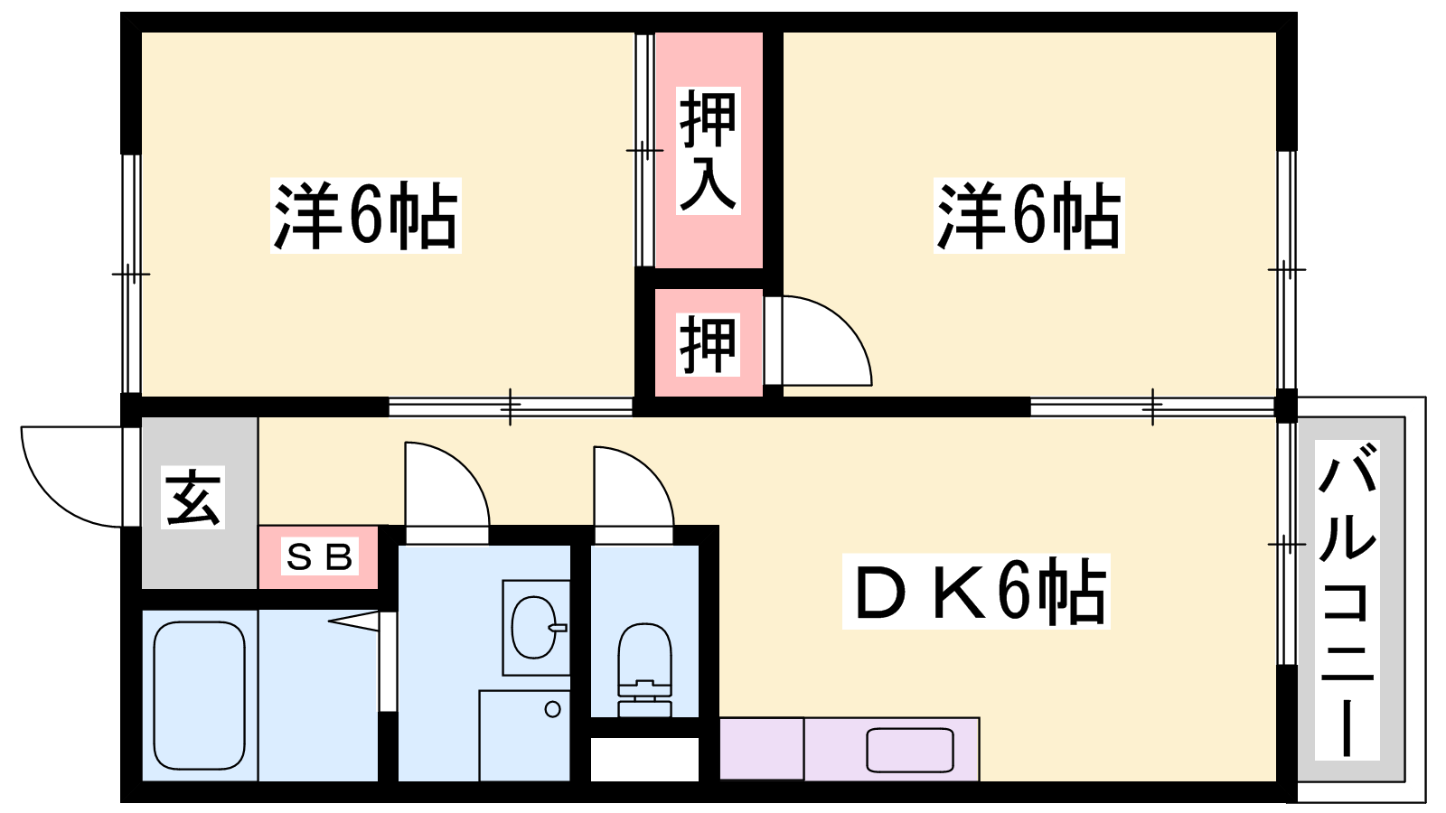 - DK6帖、洋室6帖、洋室6帖