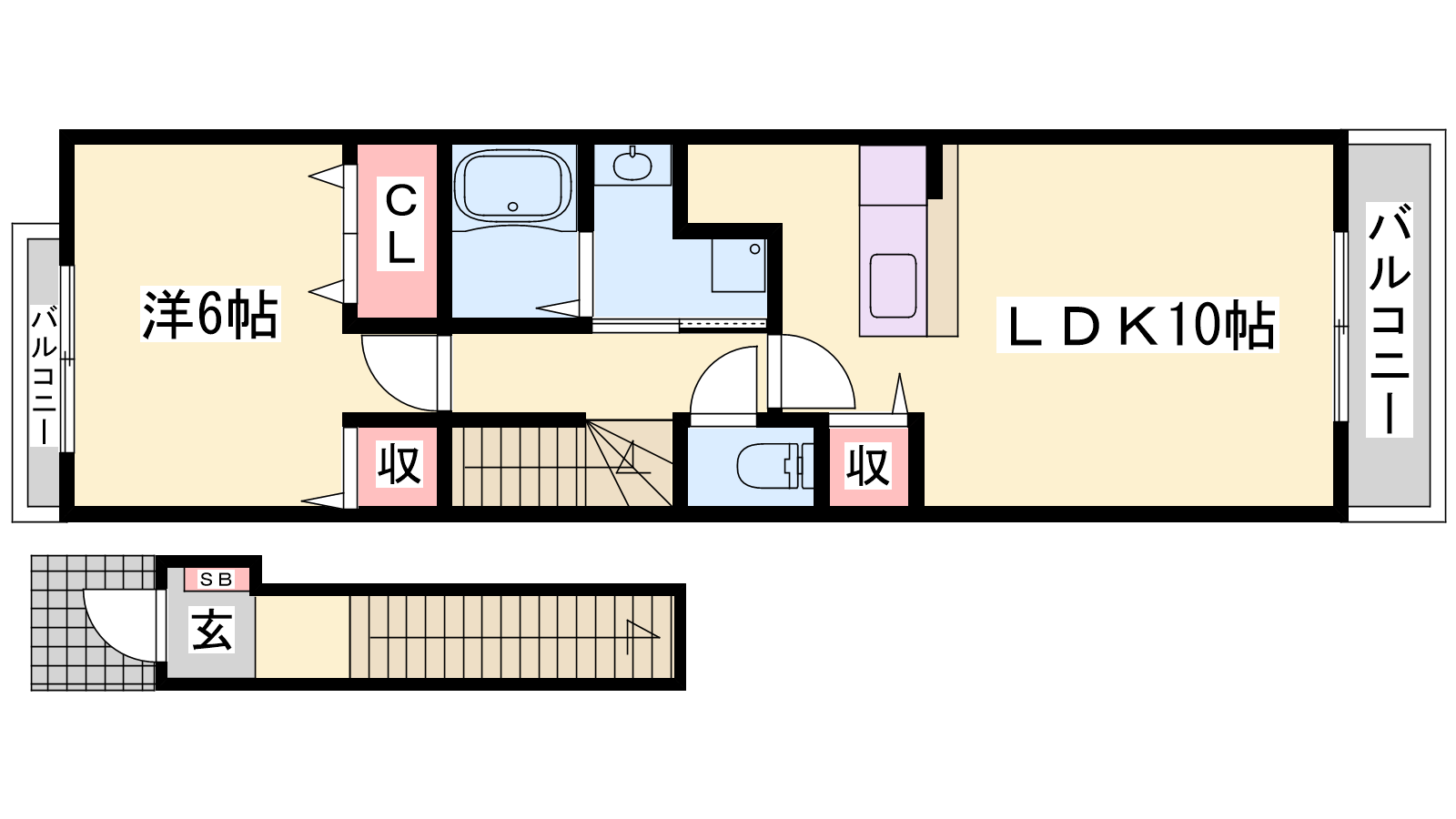 - LDK10帖、洋室6帖