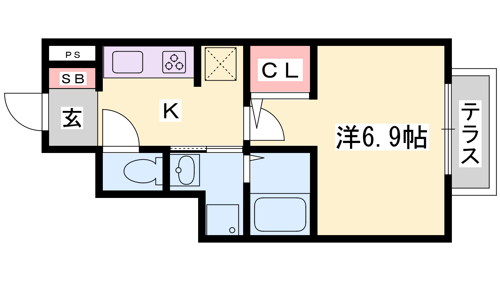 - K2帖、洋室6.9帖