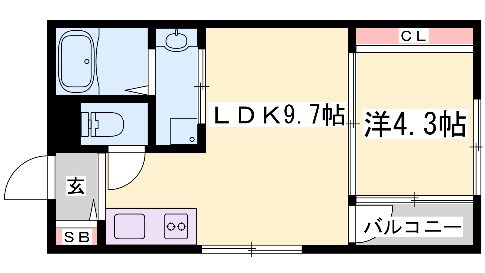 - LDK9.7帖、洋室4.3帖