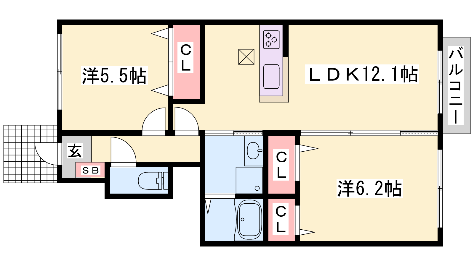 - LDK12.1帖、洋室6.2帖、洋室5.5帖