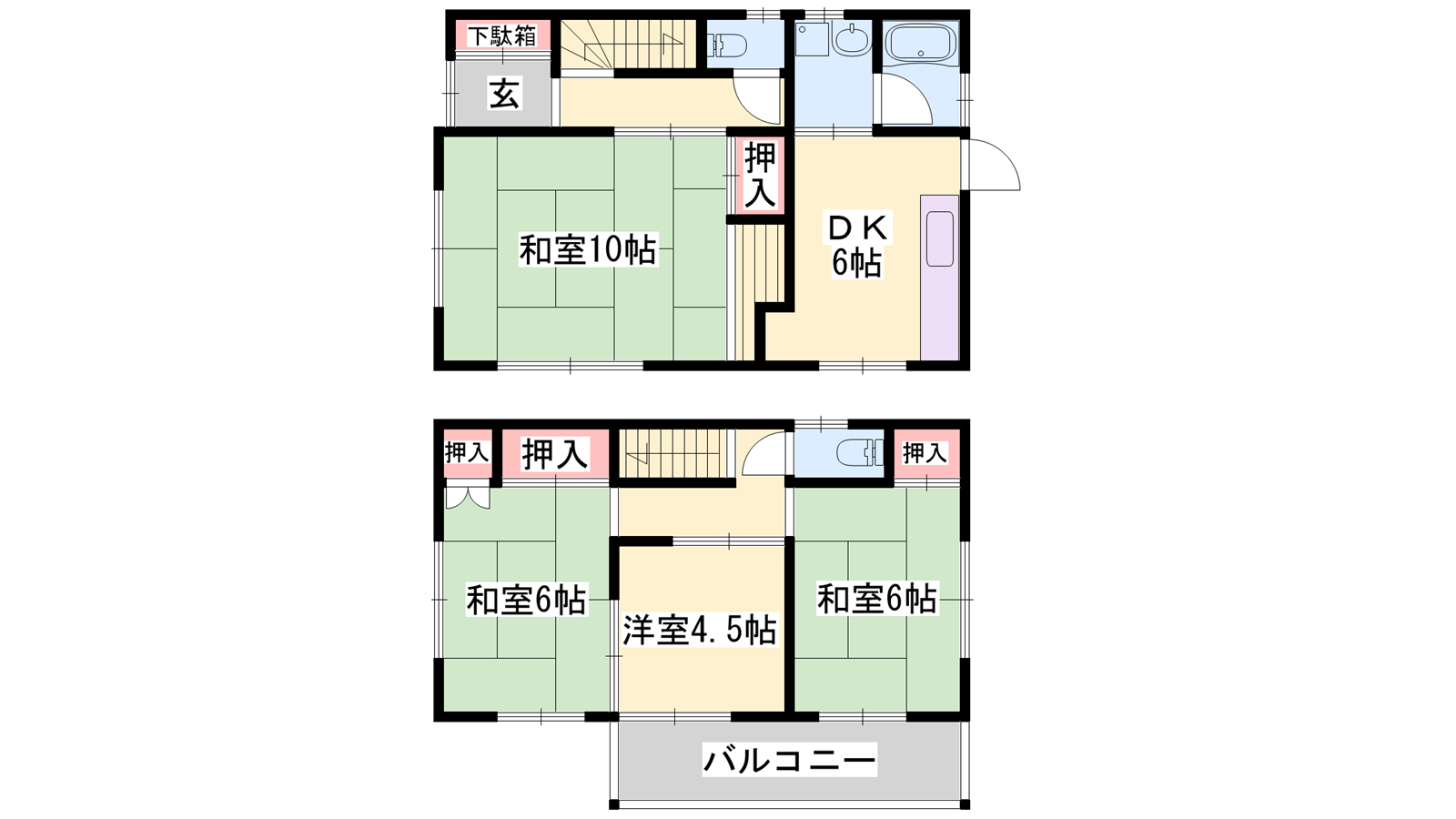 - DK6帖、洋室4.5帖、和室10帖、和室6帖、和室6帖