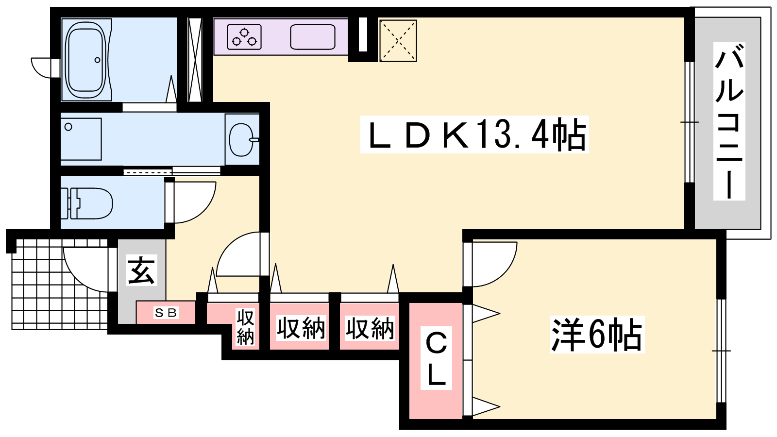 - LDK13.4帖、洋室6帖