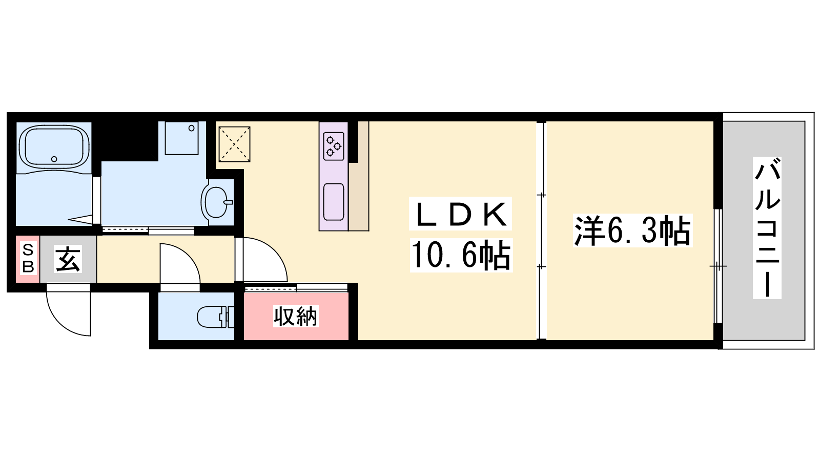 - LDK10.6帖、洋室6.3帖