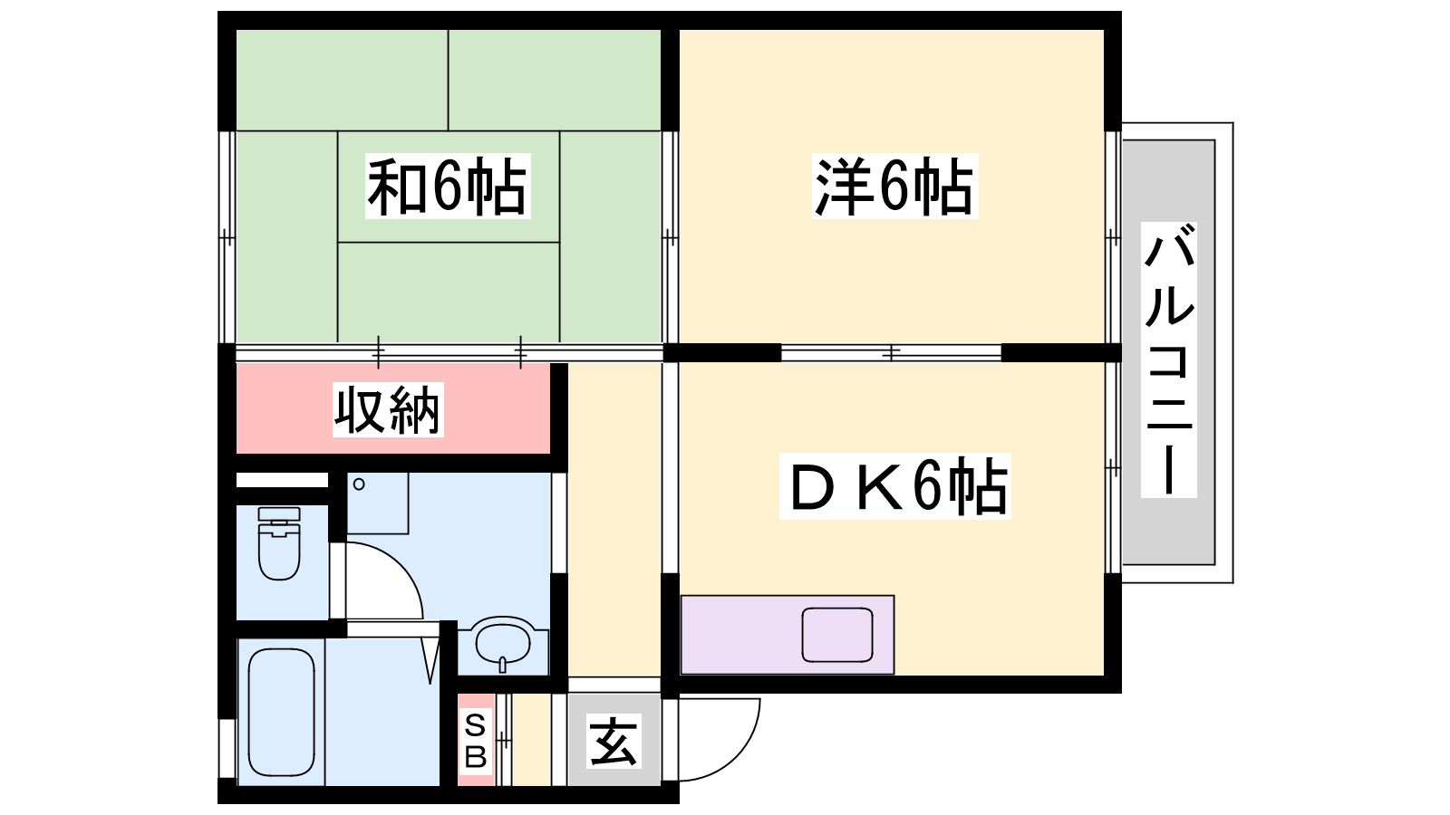 - DK6帖、洋室6帖、和室6帖