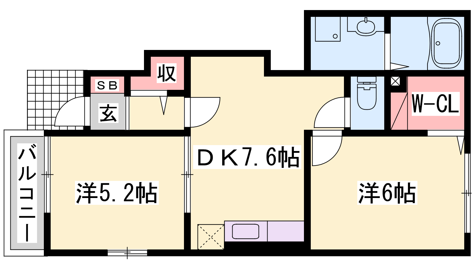 - LDK7.6帖、洋室6帖、洋室5.2帖