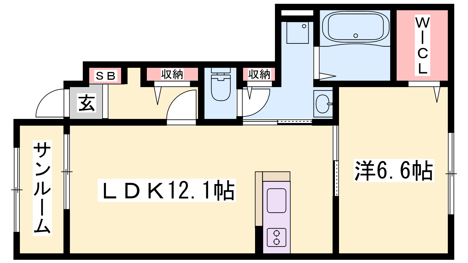 - LDK12.1帖、洋室6.6帖