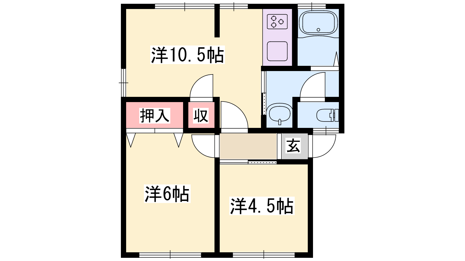 - LDK10.5帖、洋室4.5帖、洋室6帖