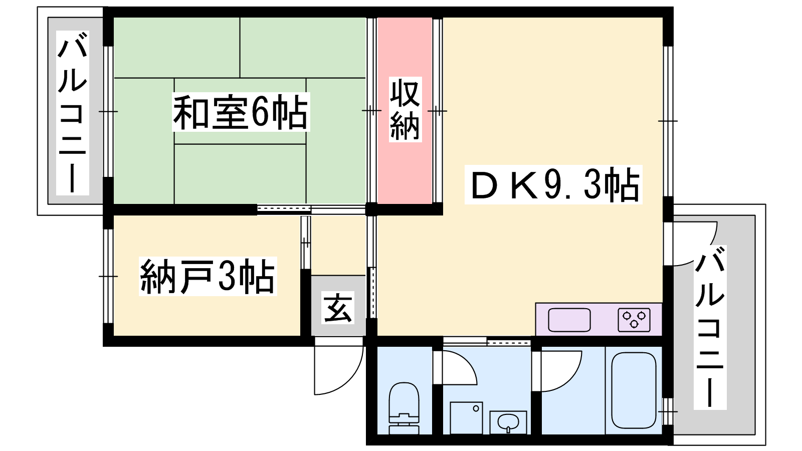 - DK9.3帖、洋室3帖、和室6帖