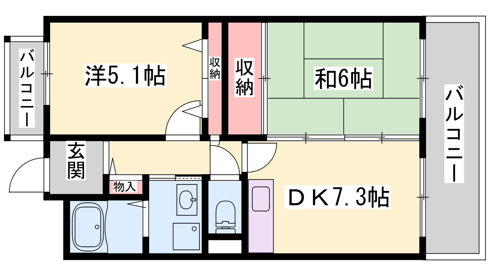 - DK7.3帖、和室6帖、洋室5.1帖